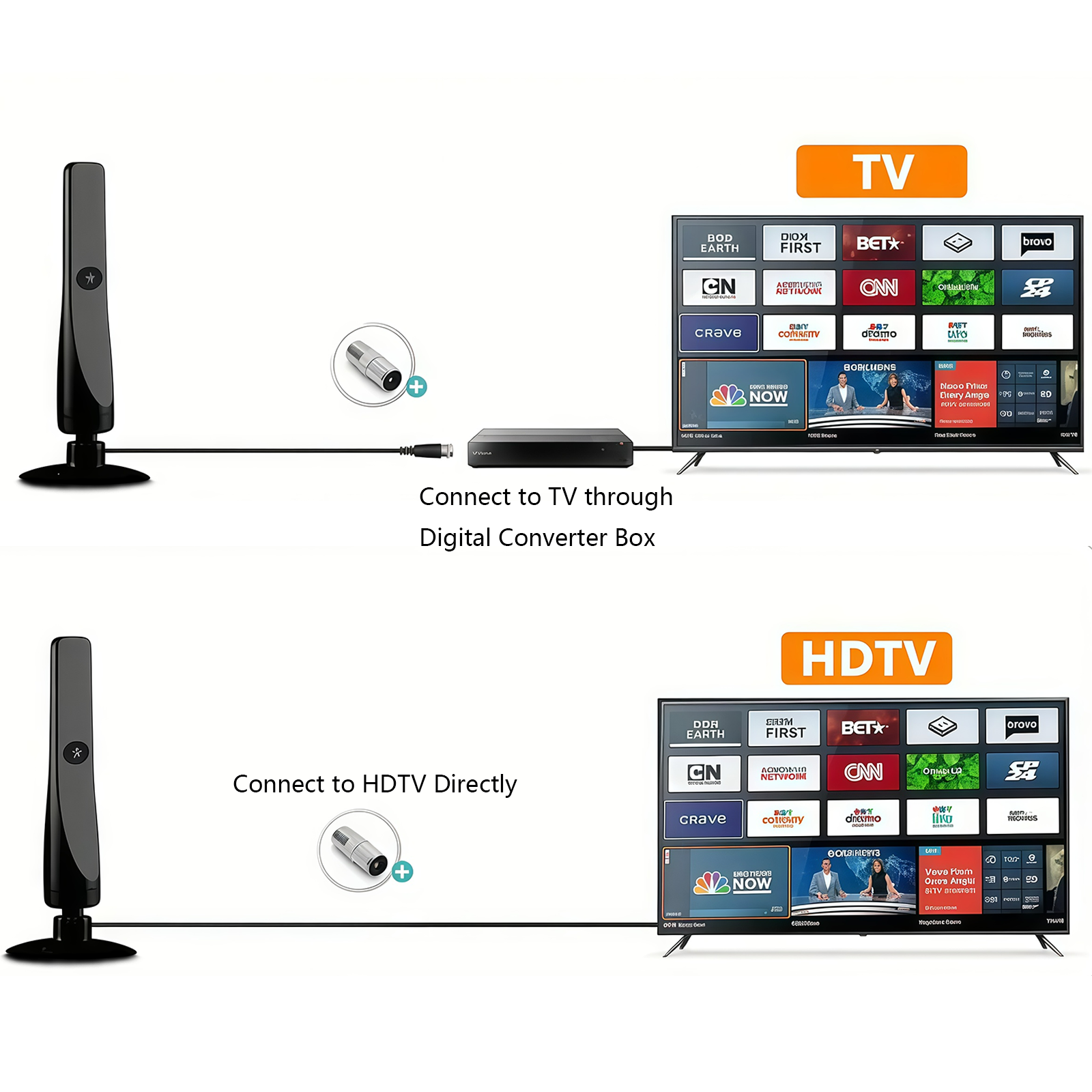 Todos makes the installation process very straightforward. It is designed for plug-and-play use, allowing for easy and rapid connection to any Digital Converter Box. This ensures that even your older TV models can quickly receive HD digital signals. Furthermore, the included suction base and 3-meter cable allow you flexibility in placing the antenna for the best reception, even after connecting the converter.