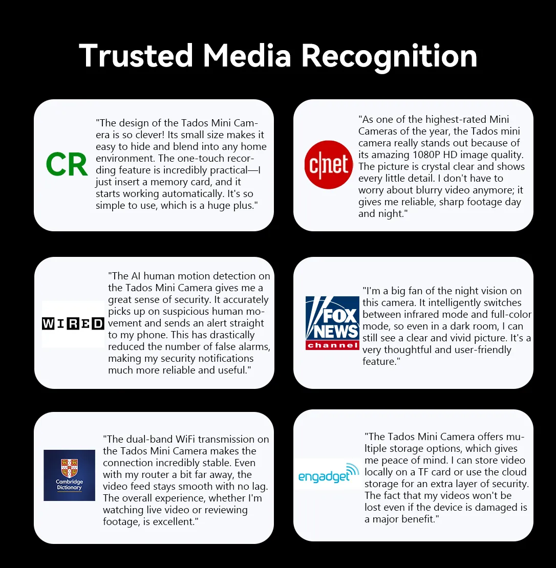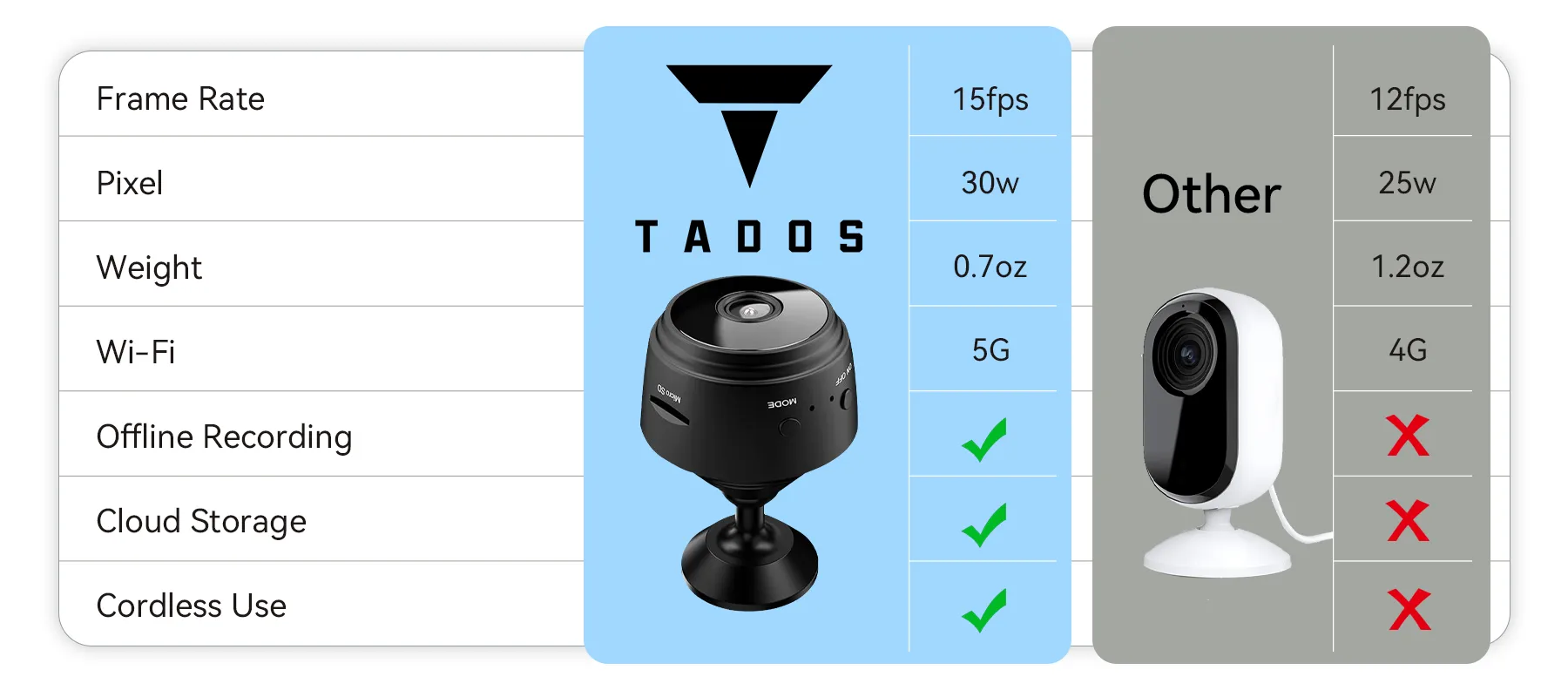 That’s how the Tados Mini WiFi Security Camera was born. This compact, lightweight device can be placed anywhere in your home, making monitoring effortless. The camera promises convenience and peace of mind, helping you capture every important moment at home.